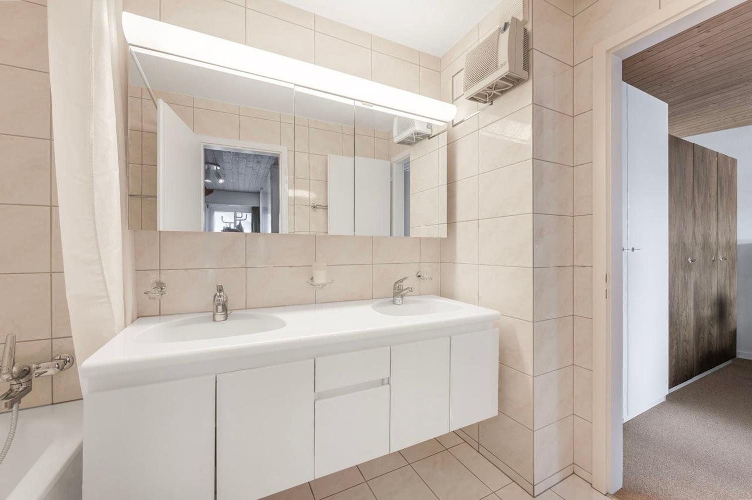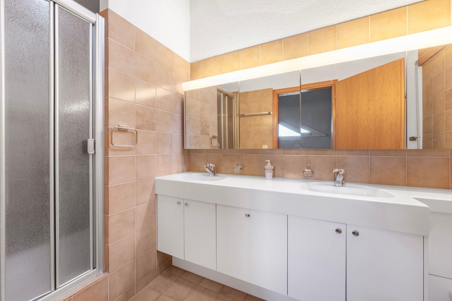 Das 1. Obergeschoss bietet drei geräumige Schlafzimmer sowie ein Badezimmer mit Doppellavabo und ein seperatesWC.