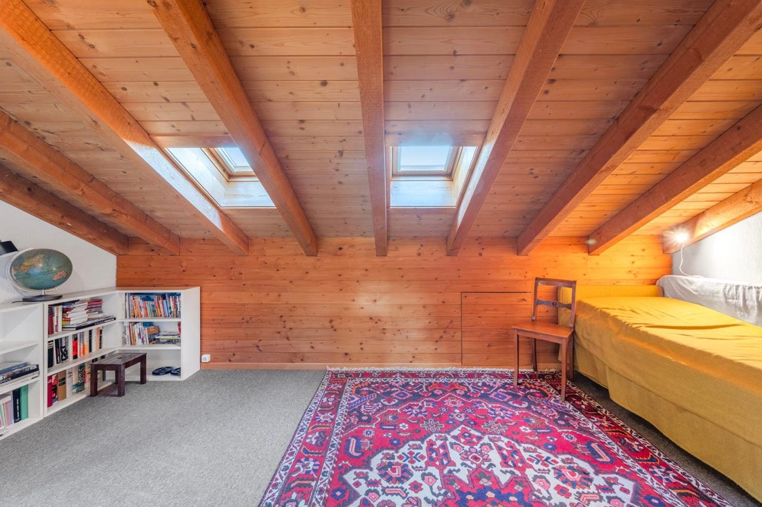 Im Dachgeschoss steht ein grosser, vielseitig nutzbarer Raum mit weiterer Nasszelle (DU/WC) zur Verfügung –ideal als Gäste-, Spiel-oder Fitnesszimmer.