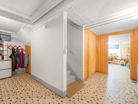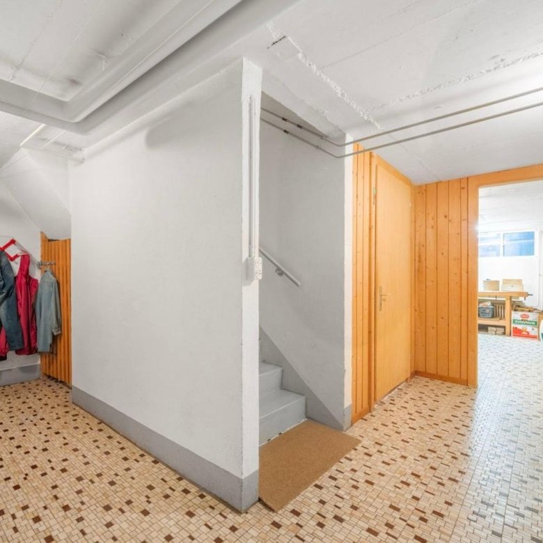 Im Untergeschoss befinden sich der Technikraum, die Waschküche und ein Hobbyraum mit Gartenzugang. Der ehemalige Tankraum bietet zusätzliches Potenzial und kann mit einem direkten Zugang zur Garage umgebaut oder erweitert werden.